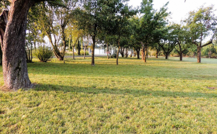 Usytuowany jest na działce o powierzchni 7300 m², ze wszystkich stron otoczony zielenią. Znajdziemy tu między innymi malowniczy stary sad czy piękną aleję wierzbową, którą wjeżdża się na posiadłość.