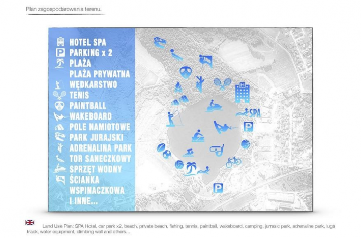 Wspaniale zlokalizowany grunt pod inwestycję składający się z ponad 30,8 ha terenów rekreacyjno-wypoczynkowych wraz z jeziorem na wyłączność o pow. lustra wody ok 15 ha i własnym przyległym do wody całym lasem ok 7 ha oraz terem do twardej zabudowy ok 3h. Więcej informacji na życzenie.