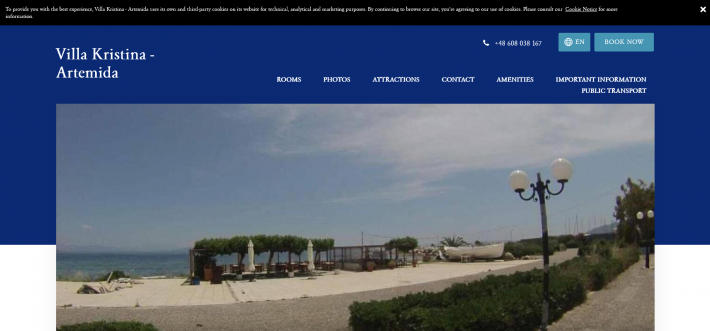Villa Kristina funkcjonuje jako dom wakacyjny do wynajęcia, własna strona internetowa, wizytówka na Google.com, lokalizacja na Google maps (jako Villa Kristina Artemida ).