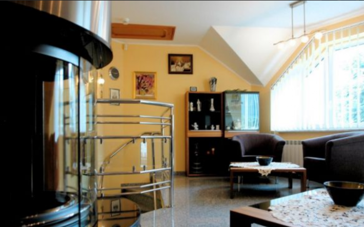 • duży salon z zamkniętym kominkiem oraz wyjściem na ogród i taras.