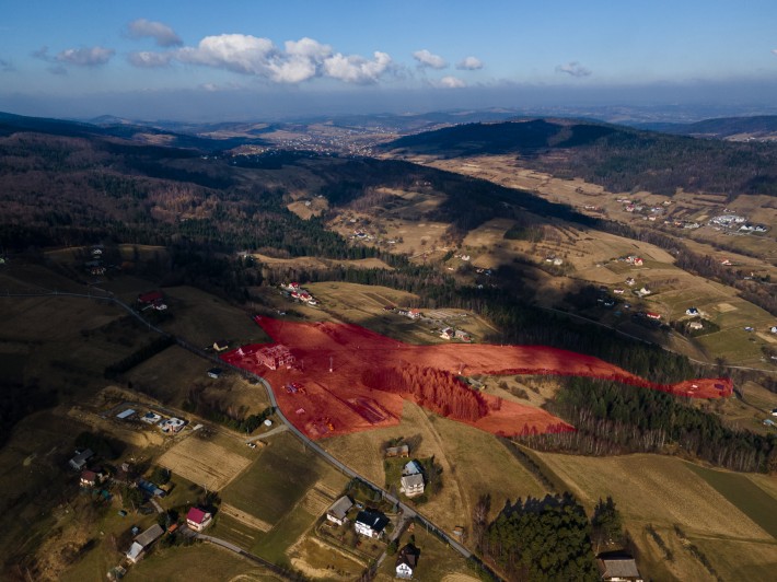 Działka o łącznej powierzchni około 80 000 m2 usytuowana jest na wzniesieniu z malowniczym widokiem.