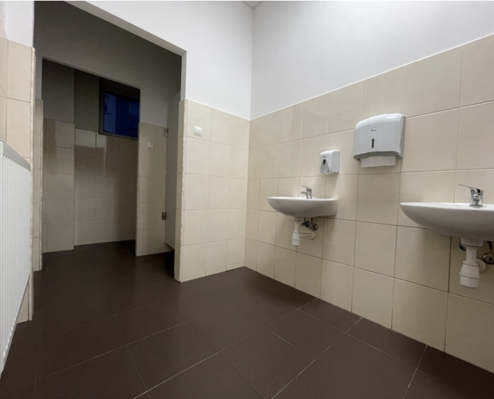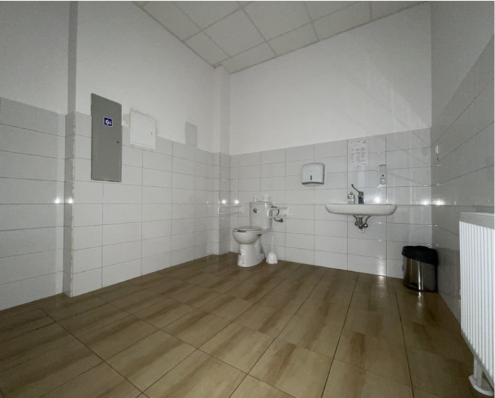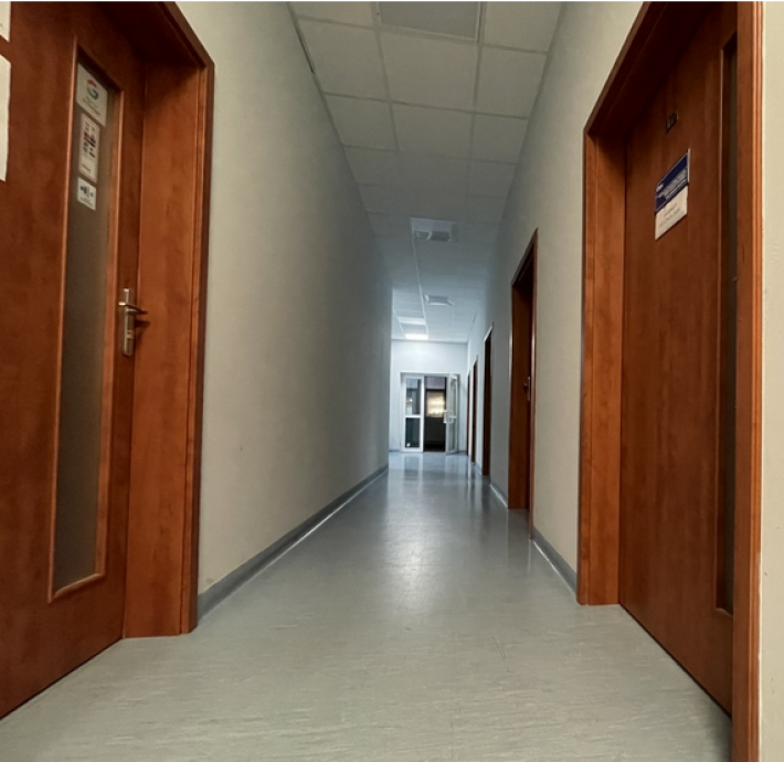 Na 1 piętrze znajduje się 21 pomieszczeń biurowych, pomieszczeń gospodarczych, klatek schodowych, korytarzy i toalet.