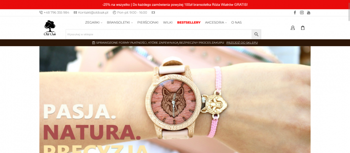 Firma zajmująca się produkcją i sprzedażą internetową biżuterii, drewnianych zegarków oraz innych akcesoriów z drewna i naturalnych materiałów.