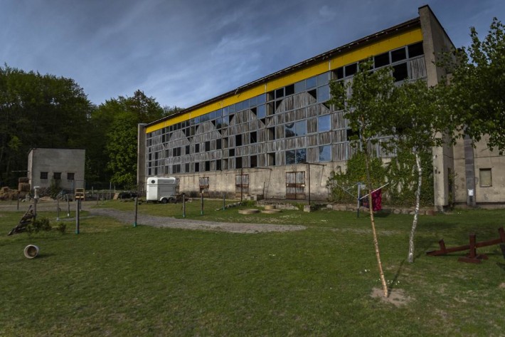 Budynek zaprojektowany jako hala widowiskowo sportowa. Opuszczony przez kilka lat. Kupiliśmy go i wykorzystujemy jako przestrzeń do terapii z udziałem koni.