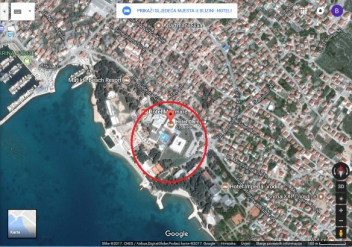 Hotel ma 4 gwiazdki i znajduje się na plaży, składa się z 241 pokoi ,215 pokoi superior i 26 apartamentów w Olympia oraz w nowym budynku w 2017 roku. Olympia ze 148 pokojami (19 apartamentów de lux i 129 pokojami luksusowymi) ) co razem tworzy 389 pokoi w jednym z najpiękniejszych hoteli w Chorwacji. Posiada również pięć basenów (cztery na zewnątrz i jedno na 9. piętrze Olympia ), siedem barów (lobby, aperitif, plaża), dwie olbrzymie restauracje w Olympia / Olympia, tawernę jako tradycyjną restaurację, trzy sale konferencyjne i trzy mniejsze sale kongresowe itp.)