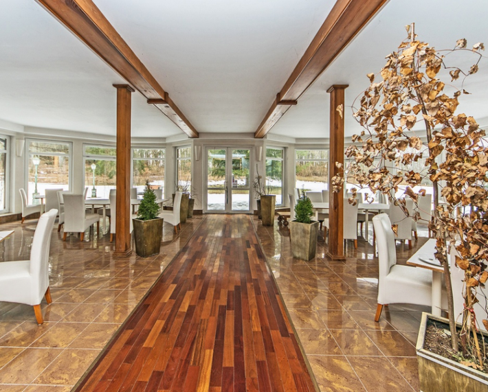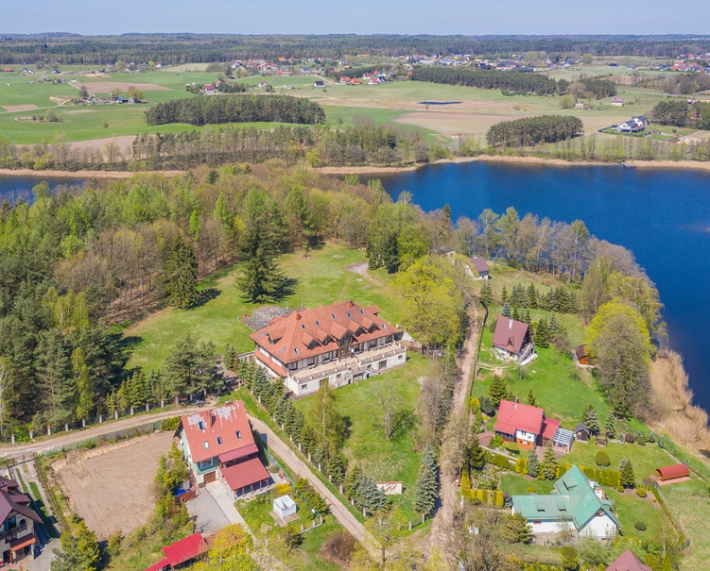 Cena zawiera dużą działkę z hotelem, 1ha ziemi do ewentualnej rozbudowy hotelu oraz 3,2ha parku z linią brzegową.