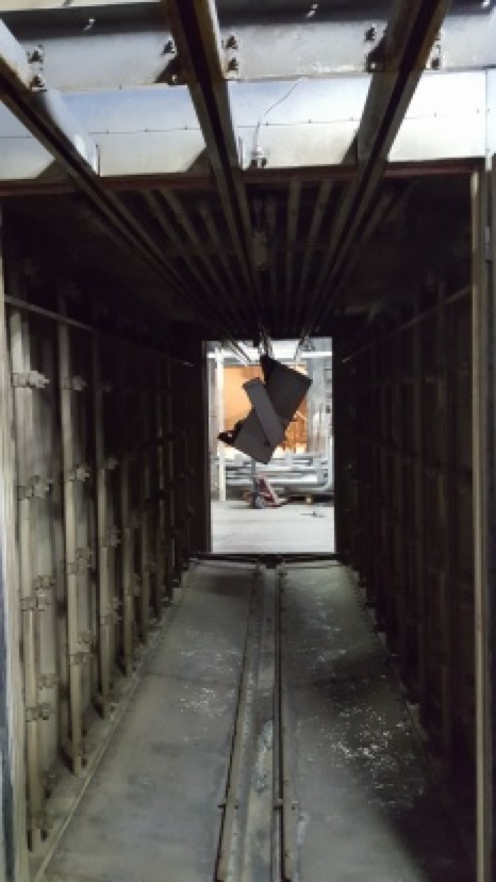# 3 piece polimeryzacyjne (9m x 1,8m x 1,8m - 5 torów; 5m x 1,8m x 1,8m - 3 tory; 4,5m x 1,8m x 1,8m - 3 tory)] - wszystko połączone transportem górnym z polem odkładczym - 9 torów.