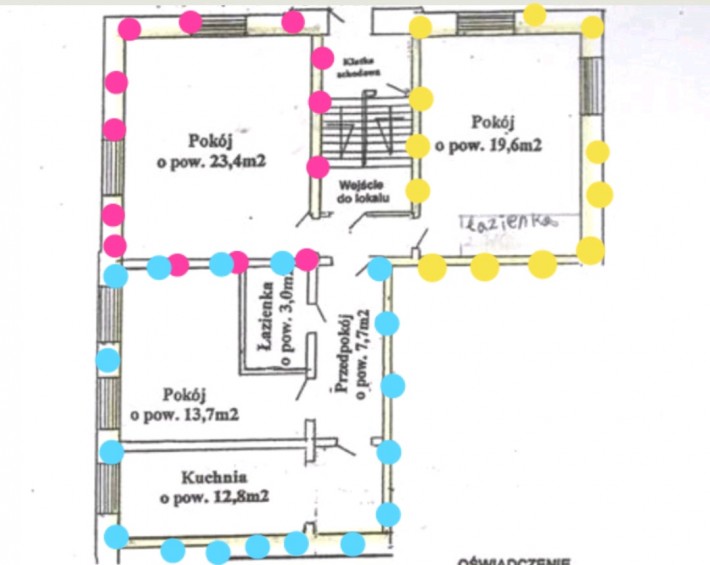 Możliwość podziału lokalu na 3 niezależne apartamenty: 37m2, 23m2 i 20m2,