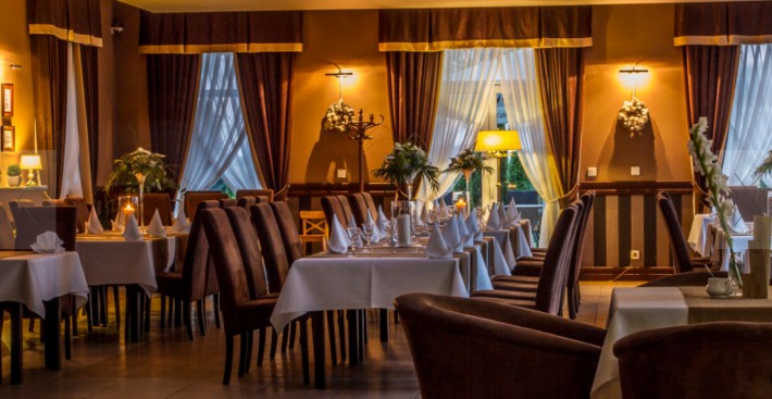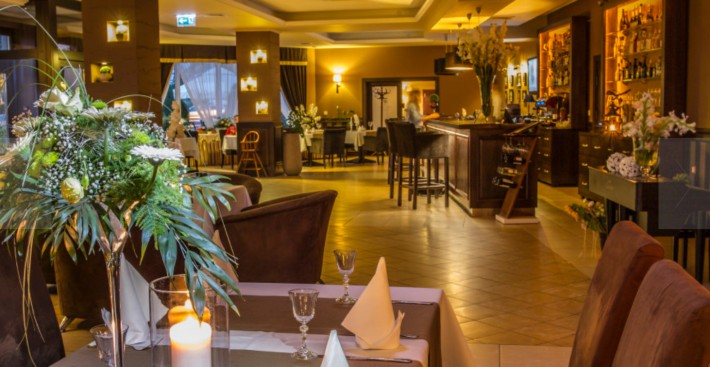 W obiekcie znajduje się restauracja wraz z kawiarnią i barem dla 100 osób, sala konferencyjno - balowa dla 200 osób, sala konferencyjna dla 40 osób, sala konferencyjna dla 15 osób, sala konferencyjna dla 8 osób, recepcja z hallem, zaplecze kuchenne (dwie kuchnie, dwie chłodnie, mroźnia, magazyny art. spoż. magazyn alkoholu i napoi, dwie zmywalnie naczyń), magazyn zasobów, magazyn pościeli, pomieszczenia gospodarcze, dwie kotłownie, strefa spa & wellness z jacuzzi i sauną suchą, salon hammam, salon urody, recepcja spa, sauny parowa i sucha, komnata Kleopatry z jacuzzi, szatnie dla gości spa, szatnia dla personelu, WC, przebieralnia, itp. Ponadto w obiekcie wydzielono cześć biurowo-administracyjną o pow. 200 m.kw. z osobnym wejściem i parkingiem dla pracowników, w której znajduje się dział księgowości z archiwum, dział marketingu, sala konferencyjna, sekretariat, gabinet menedżera, gabinet dyrektora hotelu.