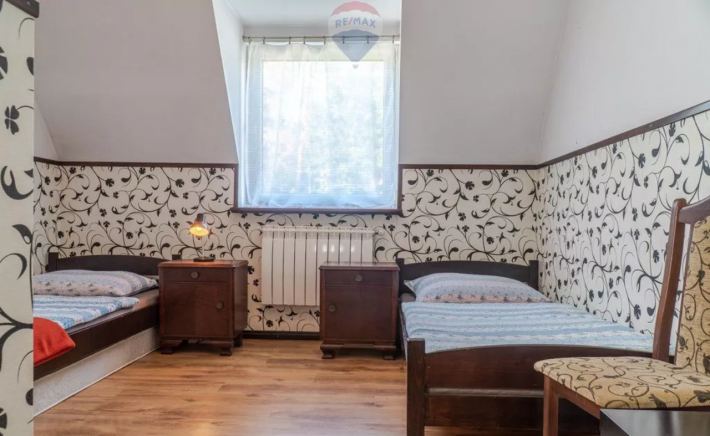 Poddasze- wyprowadzone wszelkie instalacje, w związku z czym niewielkim kosztem można przygotować 4 kolejne pokoje 2 osobowe.