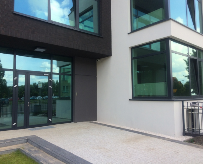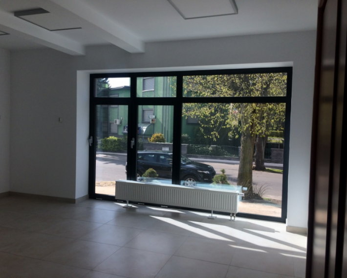 Całość został wykonana w bardzo wysokim standardzie: wszystkie pomieszczenia zostały wyposażone w strefowe sterowniki ciepła co w znacznym stopniu wpływa na jego energooszczędność. Budynek bardzo dobrze docieplony, elewacja budynku kwarcowa, stolarka okienna aluminiowa typu Aluprof w kolorze antracytowym, trzy szybowa, szkło zewnętrzne antywłamaniowe P 4 kolor szkła butelkowa zieleń z powłoką refleks. Stolarka wew. aluminiowa ppoż. , na posadzkach gres, ściany szpachlowane, malowane, sufity podwieszane, oświetlenie Led. Lokale klimatyzowane. Monitoring. Zagospodarowanie terenu z utwardzeniami oraz tereny zielone z ozdobnymi krzewami zimozielonymi. Na budynku przewidziano miejsce pod reklamę o wymiarach bilbord co daje możliwości dodatkowego zarobkowania, ponadto przygotowana została instalacja elektryczna pod reklamę zew. typu plafon. Instalacja internetowa oraz tv. - Przed budynkiem miejsca postojowe.