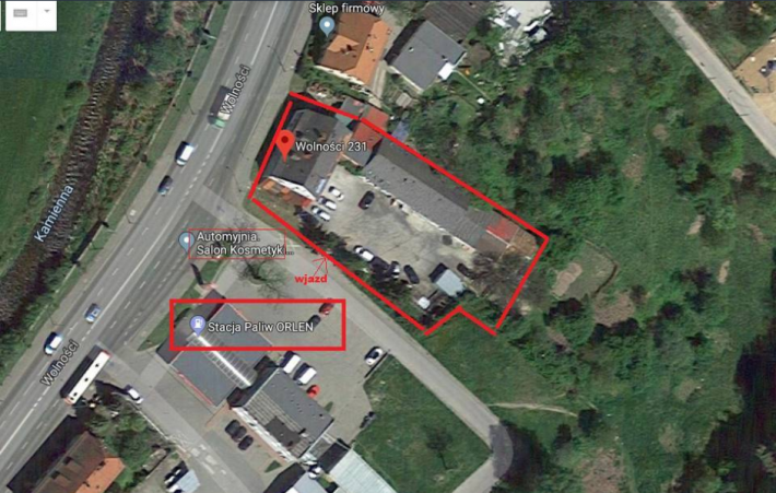 Przy drodze głównej z bezpośrednim dostępem do drogi asfaltowej , obok stacji Paliw Orlen oraz samoobsługowej myjni samochodowej .