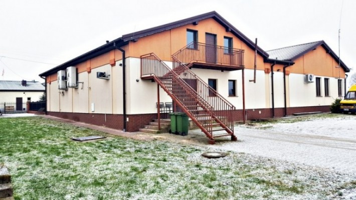 Budynek piekarni, murowany, parterowy z częścią biurową i produkcyjno- magazynową. Budynek w technologii z lat '60 do wykorzystania jako hurtownia,magazyn, warsztat samochodowy. Nieruchomość dysponuje szerokim podjazdem. Przejazd na około budynku samochodem dostawczym. Własne ogrzewanie.