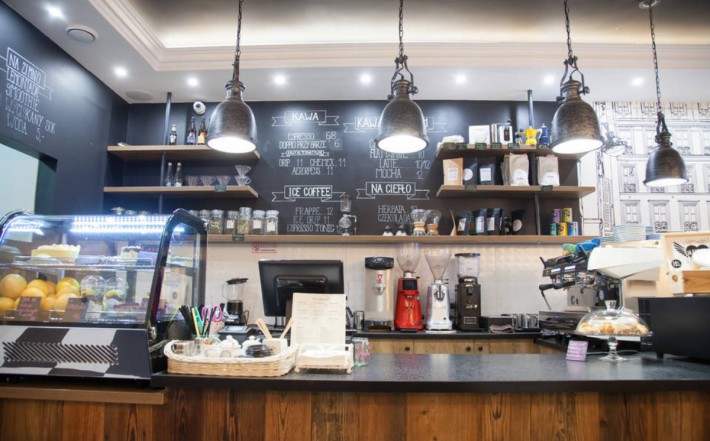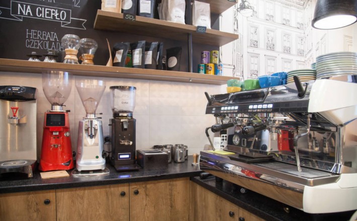 Lokal gastronomiczny o powierzchni ok. 60m2,w pełni wyposażony (na barze min. Express do kawy dwu kolbowy, zmywarka, piekarnik, lodówki, sokowirówka, młynki do kawy, wagi, zestawy do parzenia kawy alternatywnej).