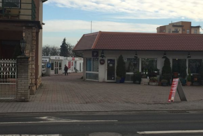 Wjazd na teren sklepu z głównej ulicy, miejsca parkingowe bezpośrednio przy lokalu.