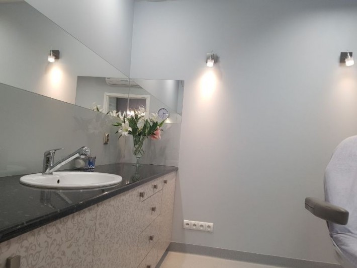 Łączna powierzchnia to: 50 m2 składająca się z 5 pomieszczeń: 2 gabinety, recepcja ze strefą manicure, pomieszczenie socjalne, toaleta (villeroy&boch)