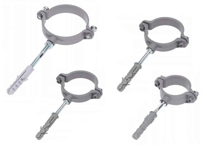 • Kompletny asortyment obejm do rur – gotowe wyroby w różnych rozmiarach, przygotowane do sprzedaży w rozmiarach: