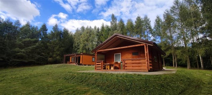 8. Domek drewniany letniskowy z tarasem w pełni wyposażony, rok budowy 2019r.