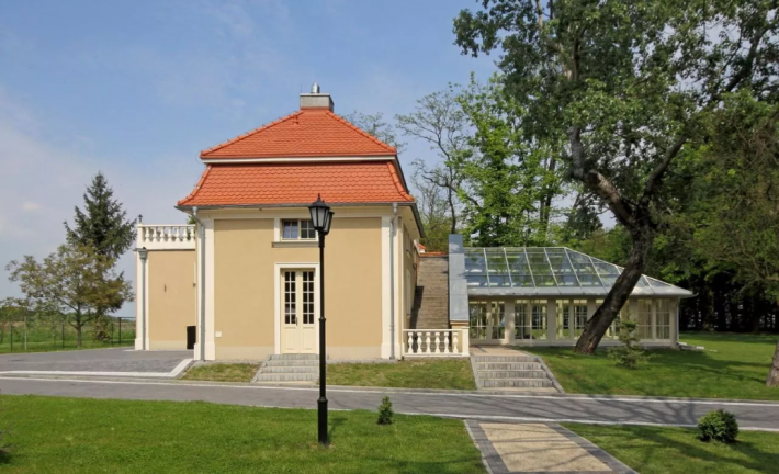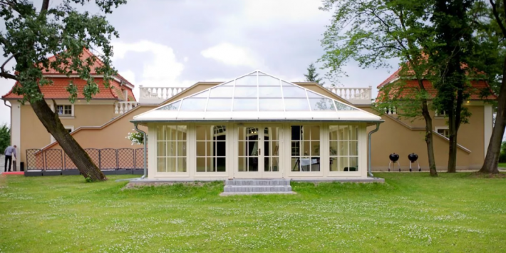 - budynek z oranżerią i salą zaadaptowaną na potrzeby imprez okolicznościowych o powierzchni 490 m2. – klimatyzowany.