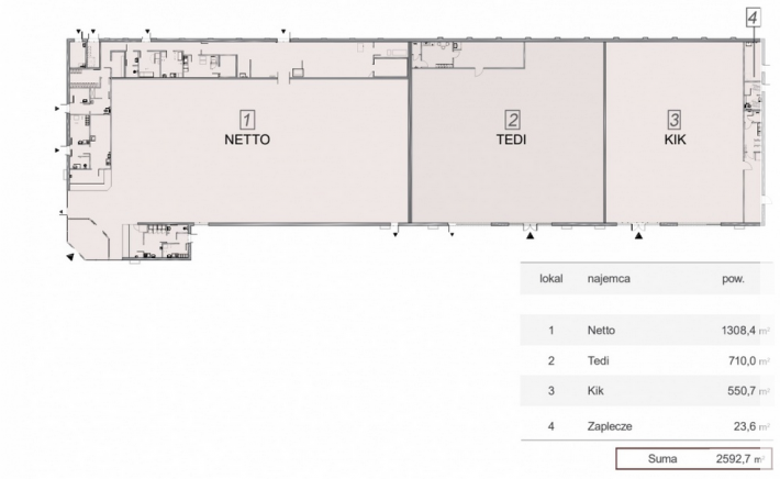 Obiekt działający, najemcy Netto, Kik, Tedi.