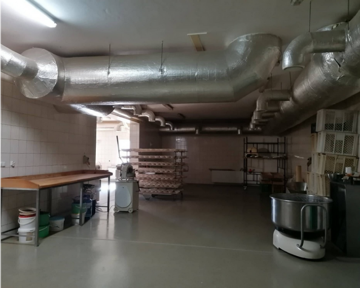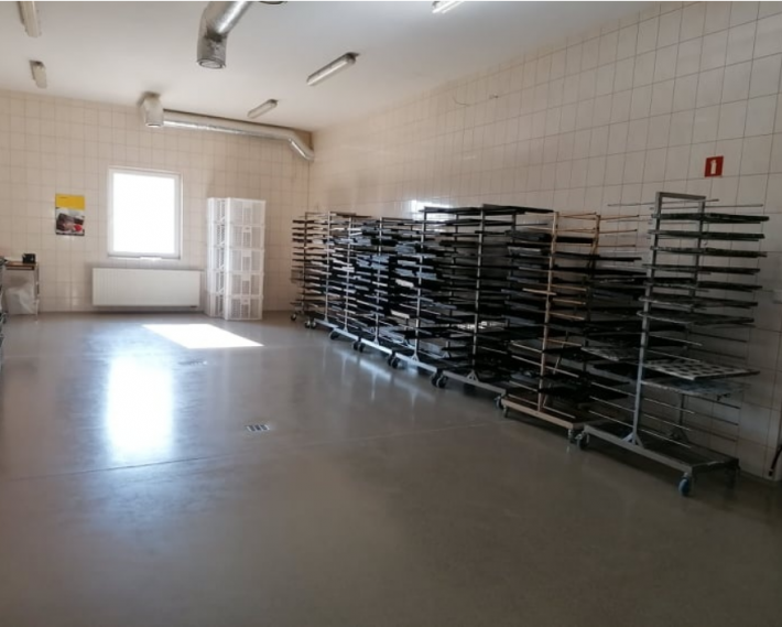 Na parterze o łącznej powierzchni 648,78m² znajduje się: hala produkcyjna o pow. 334,91m², magazyn chleba, pomieszczenie załadunku i rozładunku chleba oraz magazyn surowców, pomieszczenie do produkcji bułki tartej, zmywalnia, magazyn gospodarczy, pomieszczenie na środki czystości, kotłownia, WC 2x, winda towarowa.