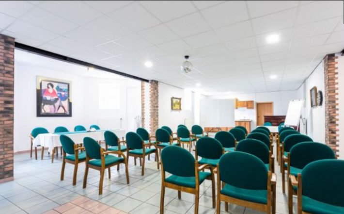 Poziom -1, to przede wszystkim duża sala szkoleniowa o pow. prawie 100mkw., toaleta wspólna, pomieszczenia magazynowe oraz techniczne, w którym znajduje się piec na ekogroszek, stanowiący główne źródło ogrzewania obiektu.