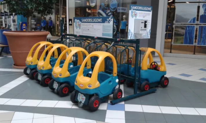 Samoobsługowa wypożyczalnia wózków sklepowych dla dzieci