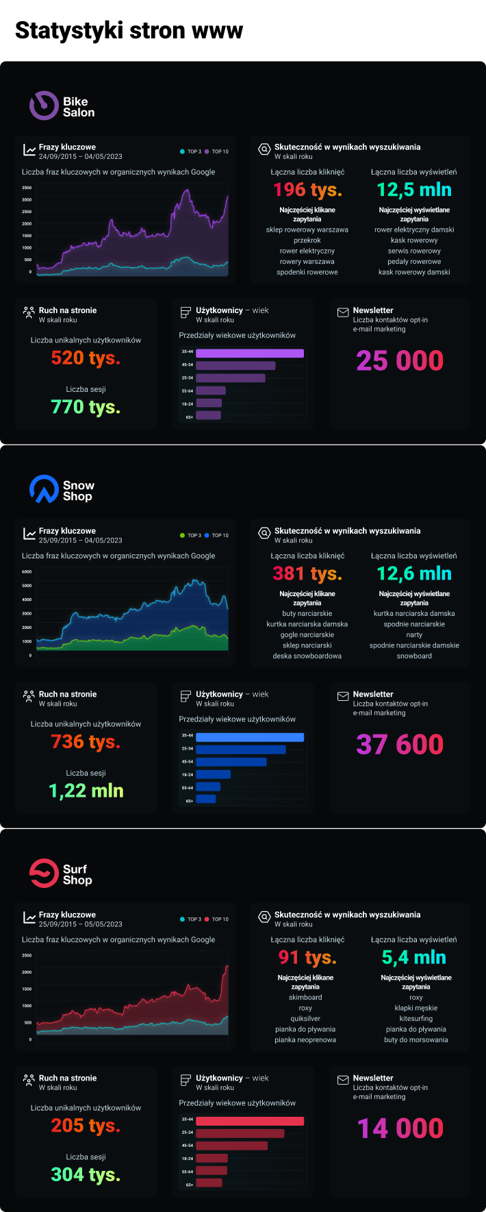 - 10 tys fraz w top 10 i ponad 30 mln wyświetleń w wyszukiwarce Google,