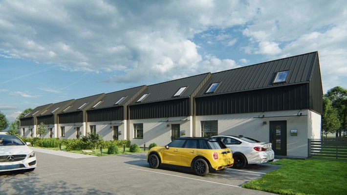 Działka budowlana wraz z rozpoczętą budową 3 budynków dwulokalowych w zabudowie szeregowej.