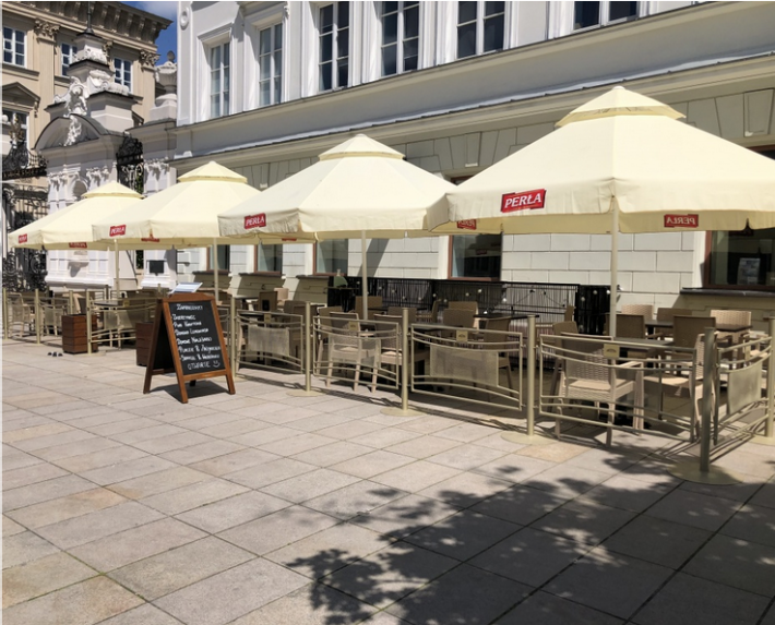 Restauracja znajduje się przy Ul. Krakowskie Przedmieście, która jest najpopularniejszym deptakiem w Warszawie. Lokal posiada również bardzo duży ogródek gastronomiczny o powierzchni 58 m kw, który w okresie letnim generuje dodatkowy obrót.