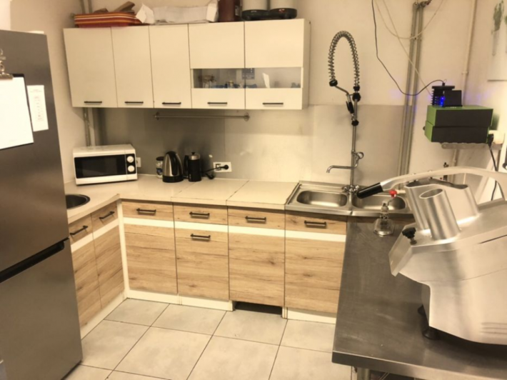 -Cała kuchnia ciepła oraz zmywak wykonana ze stali nierdzewnej wraz z szafą przelotową.