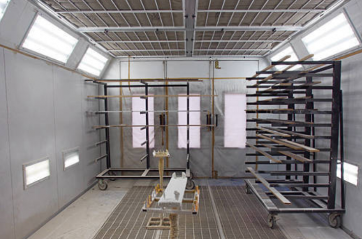 W firmie dysponujemy solidnym parkiem maszynowym i dwoma lakierniami, ponadto cały czas jest stała produkcja frontów meblowych, łóżek lakierowanych i elementów lamp. W budynkach jest system alarmowy i system kamer.
