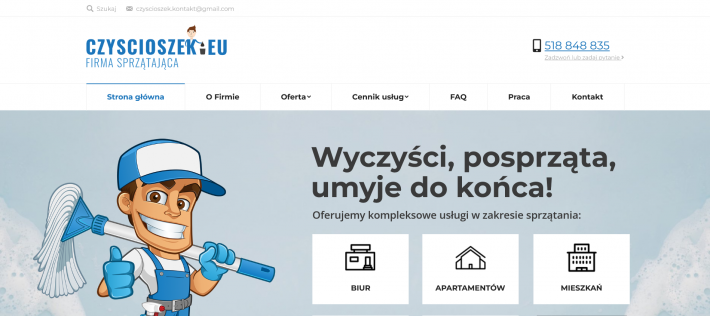 Specjalizowaliśmy się w sprzątaniach po remontach, apartamenty na krótki najem jak i mieszkaniach. Takie podejście pozwala na małe zasoby i inwestycje w sprzęt. Storna internetowa jest mocno doinwestowana i znajduje się na pierwszych pozycjach w google na Krakowskim rynku. A co za tym idzie? Oferty same wpływają niemal codziennie i zgłaszają się do nas jedne z największych firm w Krakowie.