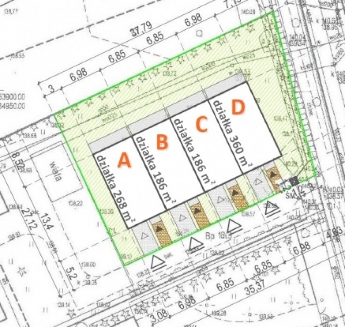 ▪ 4 działki o powierzchni od 186 m² do 360 m² - pełna własność