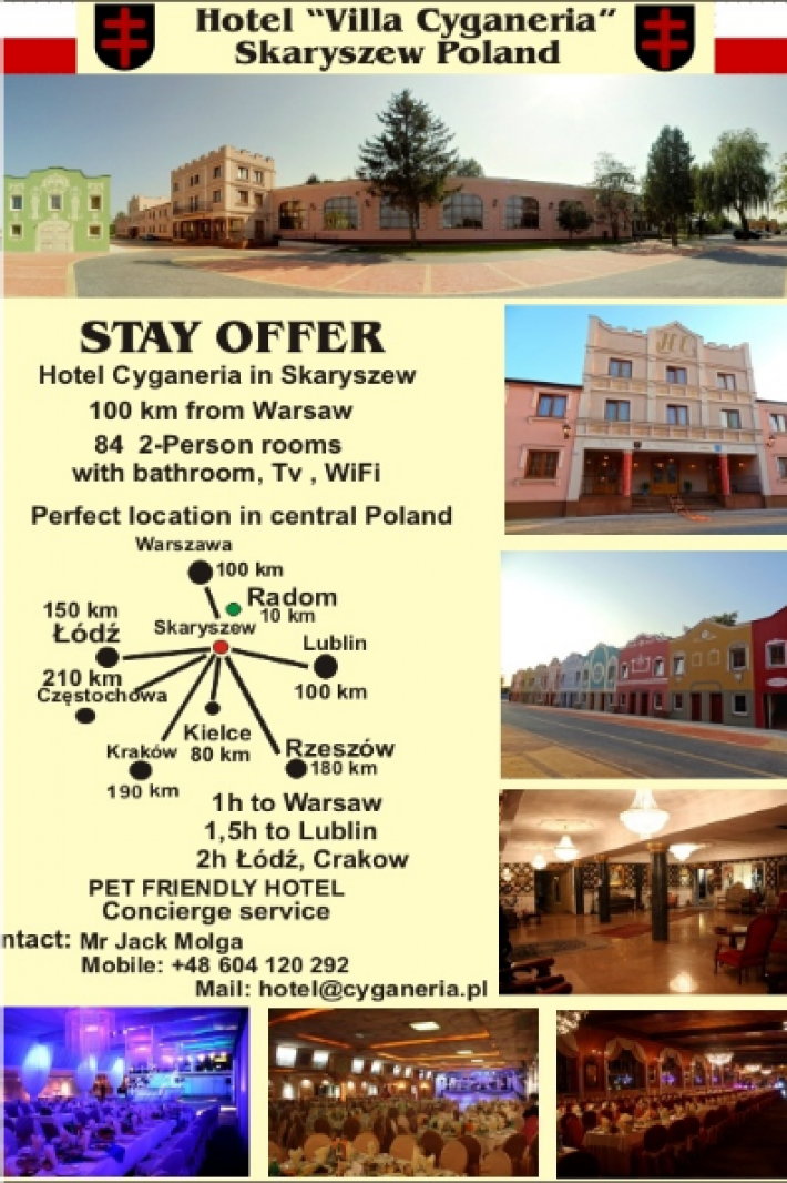 Kompleks usługowo - gastronomiczno - hotelowy to aktualnie funkcjonująca Villa Cyganeria, w której odbywają się obecnie wydarzenia, tj. konferencje,wystawy,wydarzenia rozrywkowe – Kompleks Villa Cyganeria funkcjonuje ponad 25 lat na rynku. Obiekt składa się z trzech hal wystawienniczych oraz sal konferencyjno bankietowych, działającą bazę noclegową oraz restauracją. Nieruchomość posiada pełne uzbrojenie techniczne.