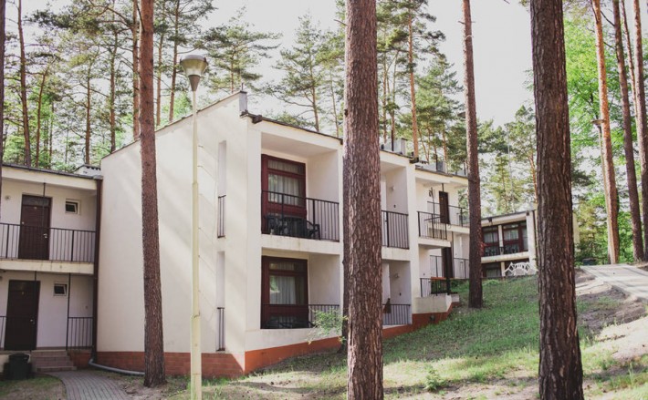 Pierwszy pawilon hotelowy posiada 16 pokoi 2-osobowych oraz 4 pokoje typu studio. Każdy pokój z łazienką, zadaszonym balkonem i oddzielnym wejściem. Pokoje wyposażone w kabinę prysznicową, lodówkę, TV, radio, czajnik oraz naczynia.