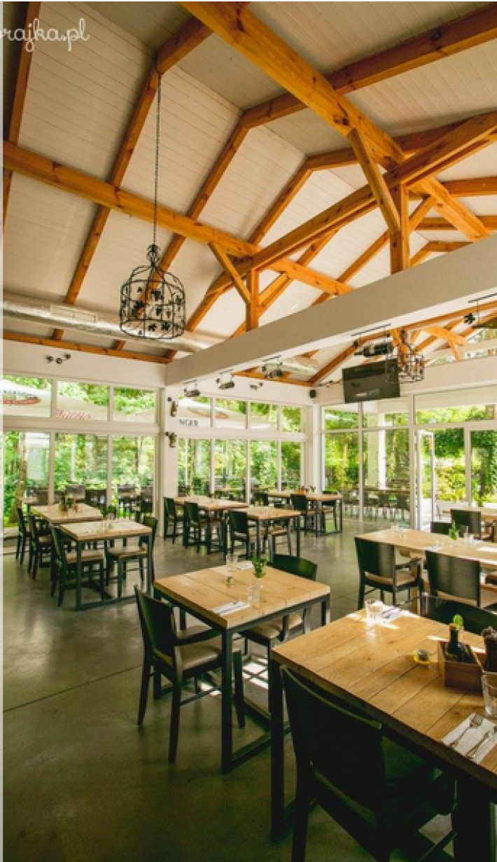- parterowy w stylu nowoczesnej stodoły, o powierzchni użytkowej 190 m2. Budynek o konstrukcji murowanej. Budynek okazały o bardzo starannym wykończeniu, gdzie znajduje się sala konsumpcyjna, kuchnia z zapleczem, chłodnia i kotłownia. Przeszklone duże witryny- szklane ściany lokalu zapewniają widoczność oraz możliwość reklamy prowadzonej działalności.