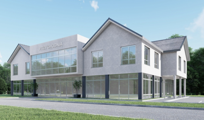 W oparciu o decyzję o warunkach zabudowy stworzono wstępną koncepcję architektoniczną budynku przeznaczonego pod placówkę medyczną.
