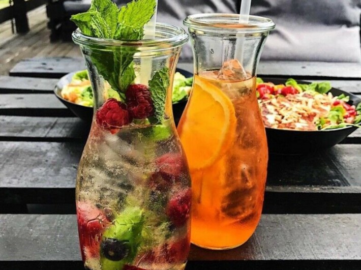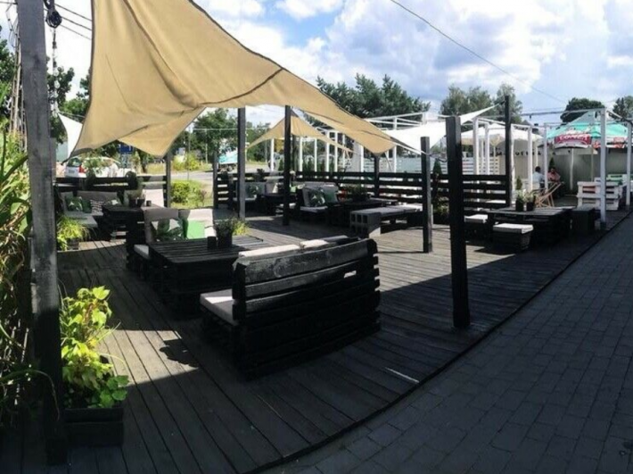 Dodatkowym atutem jest przestronny ogródek letni o powierzchni ok 100m2 wyposażony w stoły, kanapy i ławki wykonane z palet, żagle przeciwsłoneczne i przeciwdeszczowe, oświetlenie, nagłośnienie.