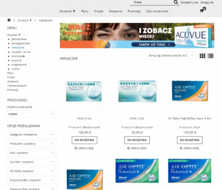 Sklep posiada ponad 300 produktów (soczewek, płynów i akcesoriów) takich firm jak Johnson&Johnson, Bausch+Lomb, Alcon, Barnaux Eyeye, Cooper Vision, Menicon, Horien, MaxVue Vision.