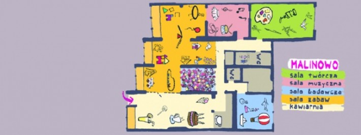 - kompletnie wyposażony lokal: trzy sale zajęciowe, sala zabaw, kawiarnia, trzy toalety (dla dzieci, dorosłych, personelu), magazyn, zaplecze