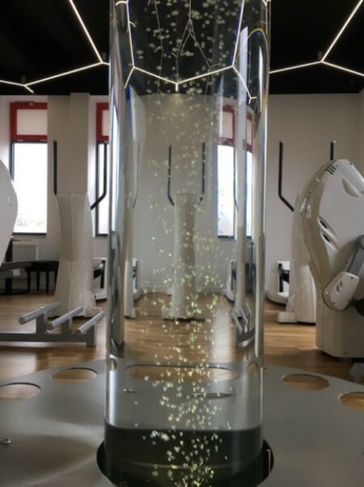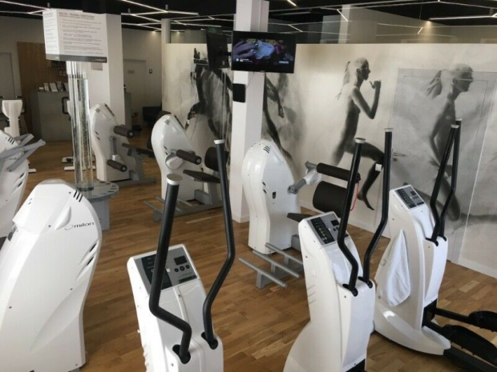 Na wyposażeniu jest waga InBody do analizy składu ciała, dystrybutor wody z osmozą do bezpłatnego korzystania przez klientów.