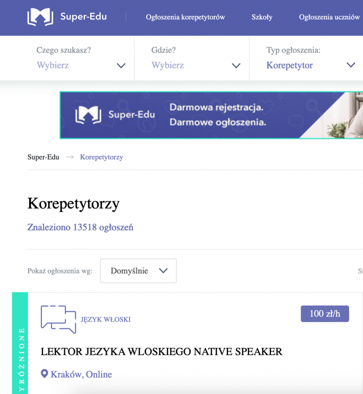 Sprzedam serwis internetowy - lider w branży ogłoszeń korepetytorów i instytucji edukacyjnych
