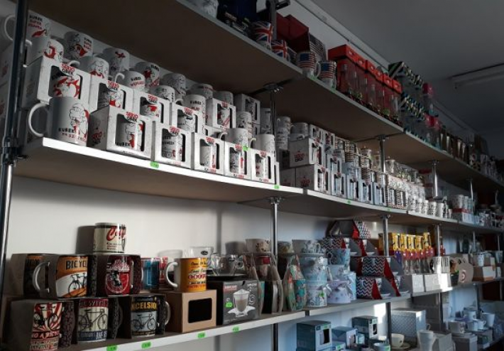 - wartość osprzętu niezbędna do funkcjonowania sklepu (regały, waga magazynowa, nacinarka kartonów, stoły, oklejarki itd)