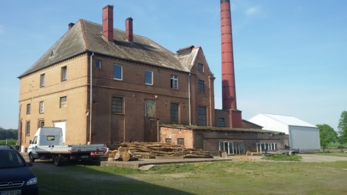 Dwie nowe hale produkcyjne oraz dwa budynki z czerwonej cegły (dawna gorzelnia), przemysłowe przyłącze prądu, przemysłowa studnia wodna, Linie przemysłowe, wózek widłowy sam. Iveco. Zapas maszyn i silników. Biura, wygodne mieszkanie dla szefa (4 pok.), pracownicze (2 pok.), szatnia pracownicza, łazienki, stołówka, Teren ogrodzony, 5 bram (dla ciężarówek). 4 ha ziemi.