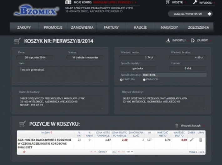 - moduł B2B - strona www dla kontrahentów (zamówienia)