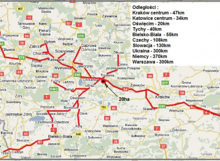 Idealne miejsce dla inwestora, który swoim działaniem chce objąć aglomeracje krakowską i katowicką, gdyż oprócz autostrady nieruchomość jest dobrze skomunikowana z drogami powiatowymi i krajowymi.