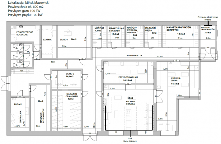 plus pomieszczenia socjalne i ciągi komunikacyjne