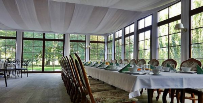 Restauracja zajmuje salę kolumnową i przeszkloną oranżerię, do której przylega kilkusetmetrowy taras zatopiony w zieleni pałacowego parku a hotelowa kuchnia wyposażona w najnowocześniejsze urządzenia gastronomiczne, serwuje swoim gościom doskonałe menu.